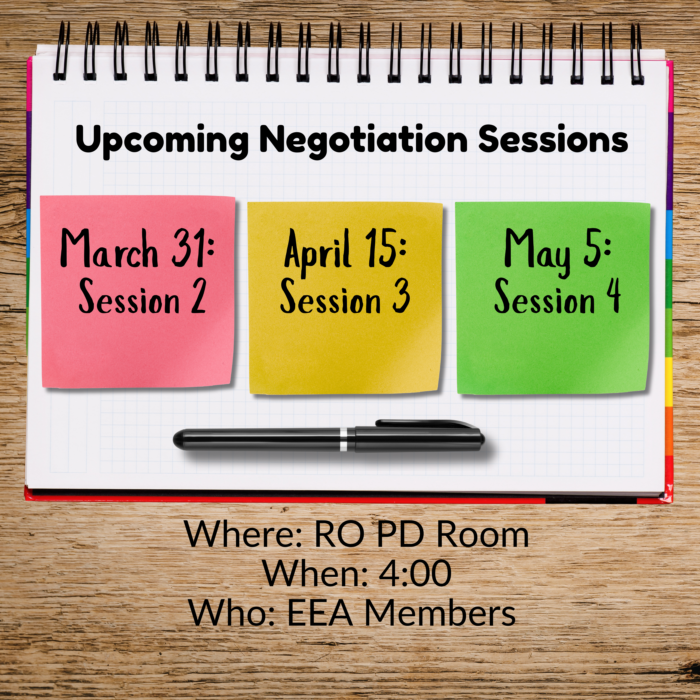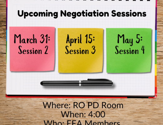 Upcoming Negotiation Sessions March 31 – Session 2 April 15 – Session 3 May 5 – Session 4 When: 4:00pm Where: RO PD Room Who:Read More